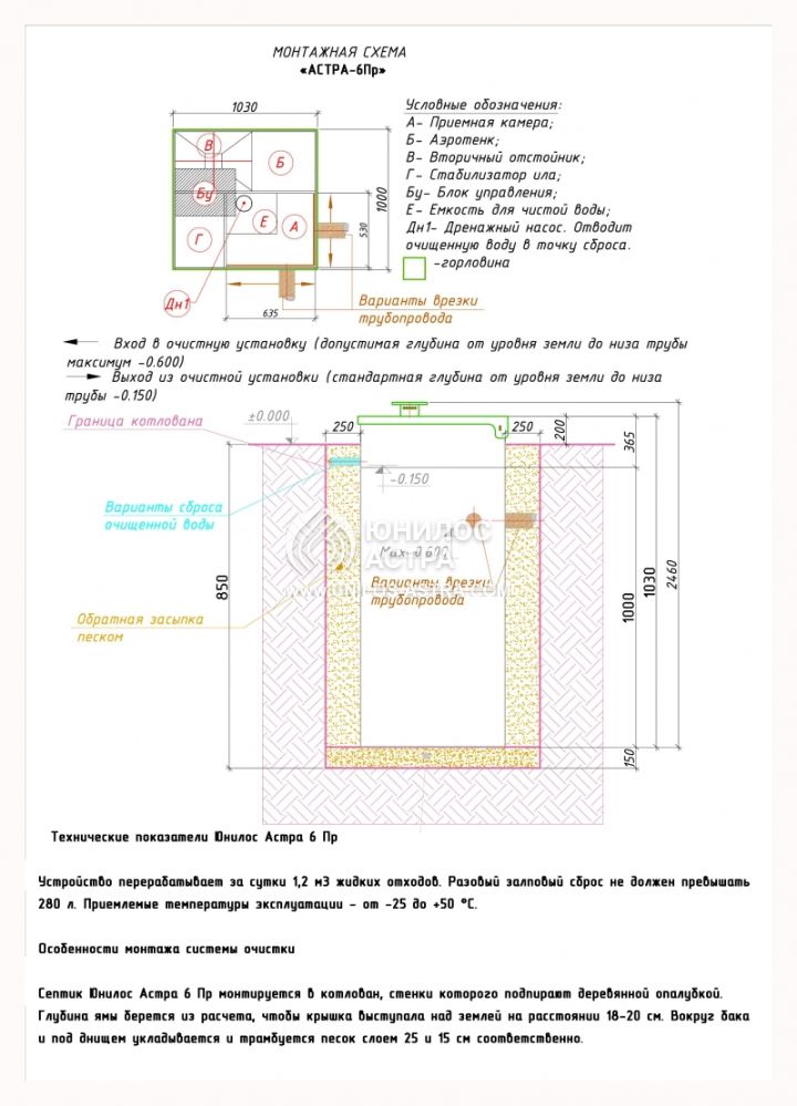 Объем переработки: 1.2 м3/сут